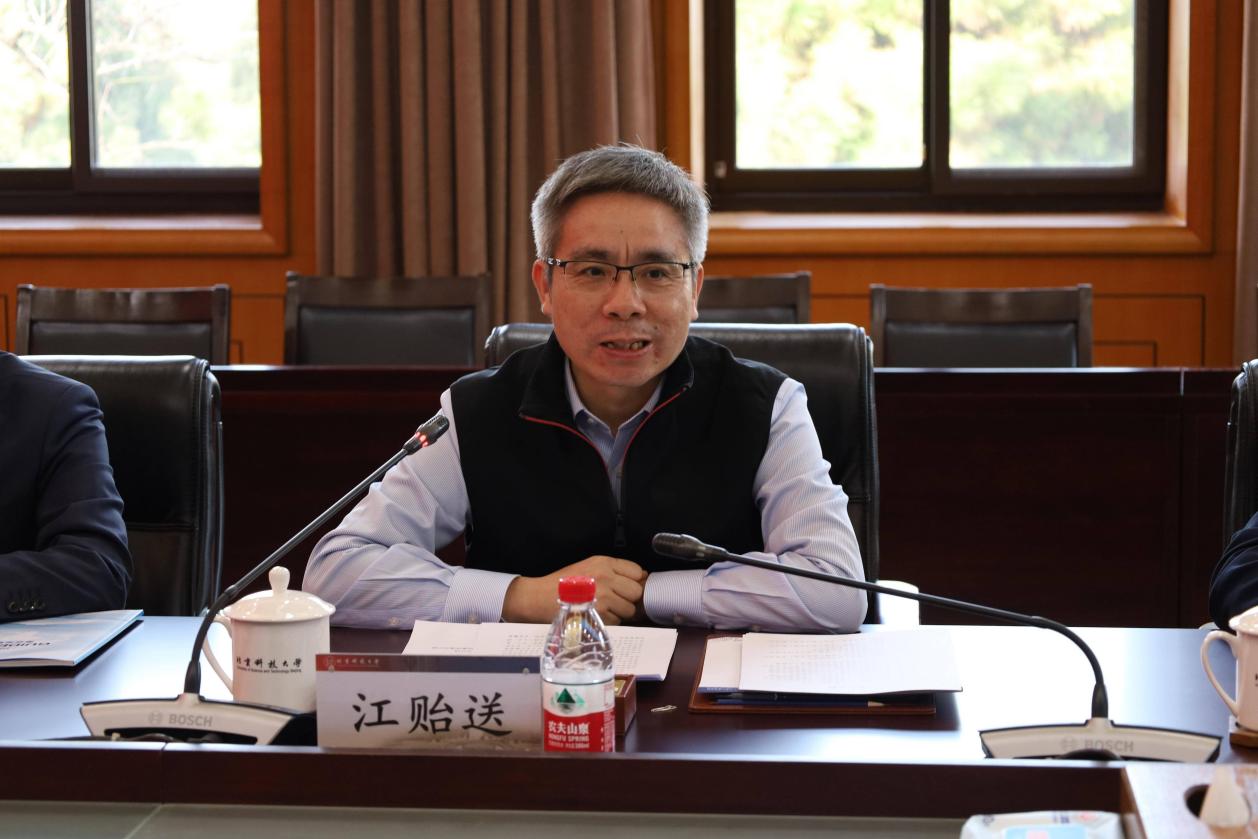 江贻送简要介绍了新兴际华集团的整体发展情况,重点阐述了集团核心业务布局与产业发展方向。他表示,新兴际华集团作为兼具情怀与担当的中央企业,始终重视科技创新与人才引育,过去与北科大在科技创新协同、科技成果转化等方面的合作成效显著、令人满意。当前,集团正处于发展关键阶段,急需高素质工程型人才支撑,希望以工程硕博士联合培养为新契机,与北科大进一步深化人才培养合作,实现校企资源互补、共赢发展。